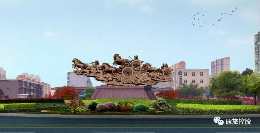 主題性景觀雕塑在特定的環(huán)境中解釋空間場所的特有主題。位于入口空間的主題性雕塑,則能更好地詮釋空間的性質(zhì)與功能。如下圖所示:通過對行唐故郡文化遺址發(fā)掘中的戰(zhàn)車、戰(zhàn)馬等多元素的提取與借鑒設(shè)計(jì)出名為龍邑春秋大體量的戰(zhàn)馬雕塑。