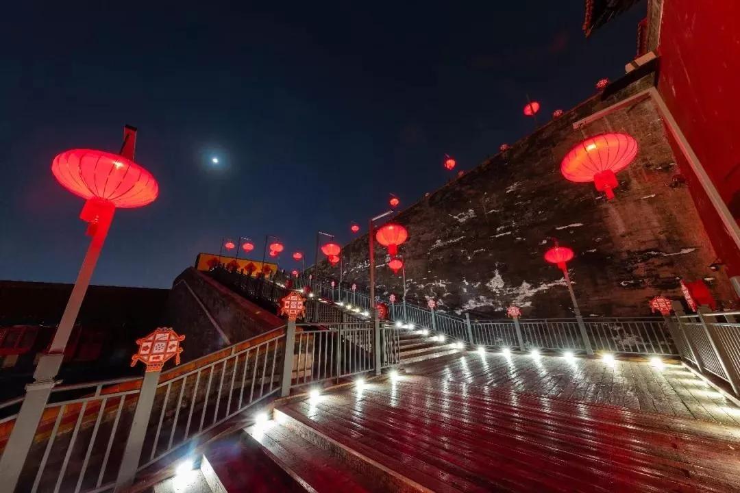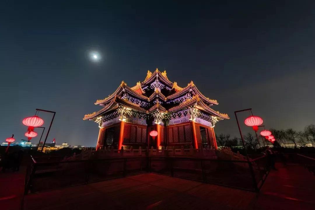 臨近城墻西側(cè)的部分古建筑也被點亮,暢音閣戲樓正上演著精彩的戲曲表演。