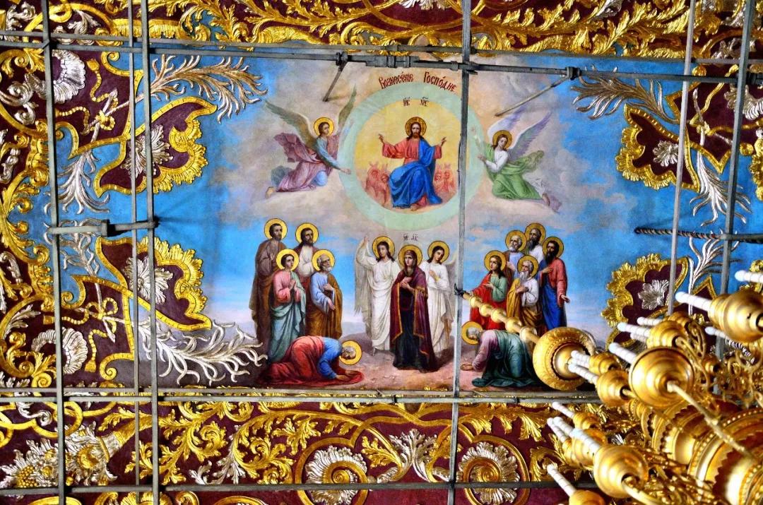 這里是一座美麗如童話般的建筑群:塔尖直指蒼穹代表著虔誠與忠貞,鐘樓高聳入云卻又精雕細(xì)琢,壁畫色彩濃郁極具視覺沖擊力,哪怕是一個小亭子從頭到腳處處可見匠心。你想象不出性格彪悍的俄羅斯粗漢子,怎么偏偏像個巧妹子,鼓搗出這么精美的東西!