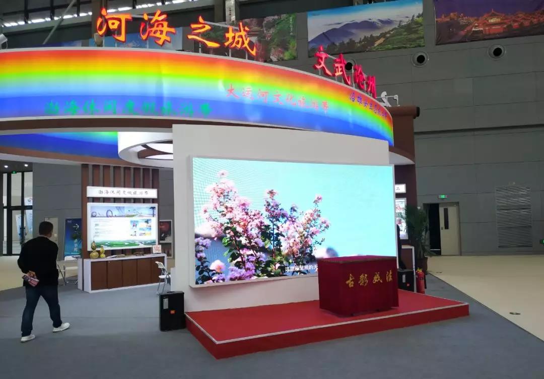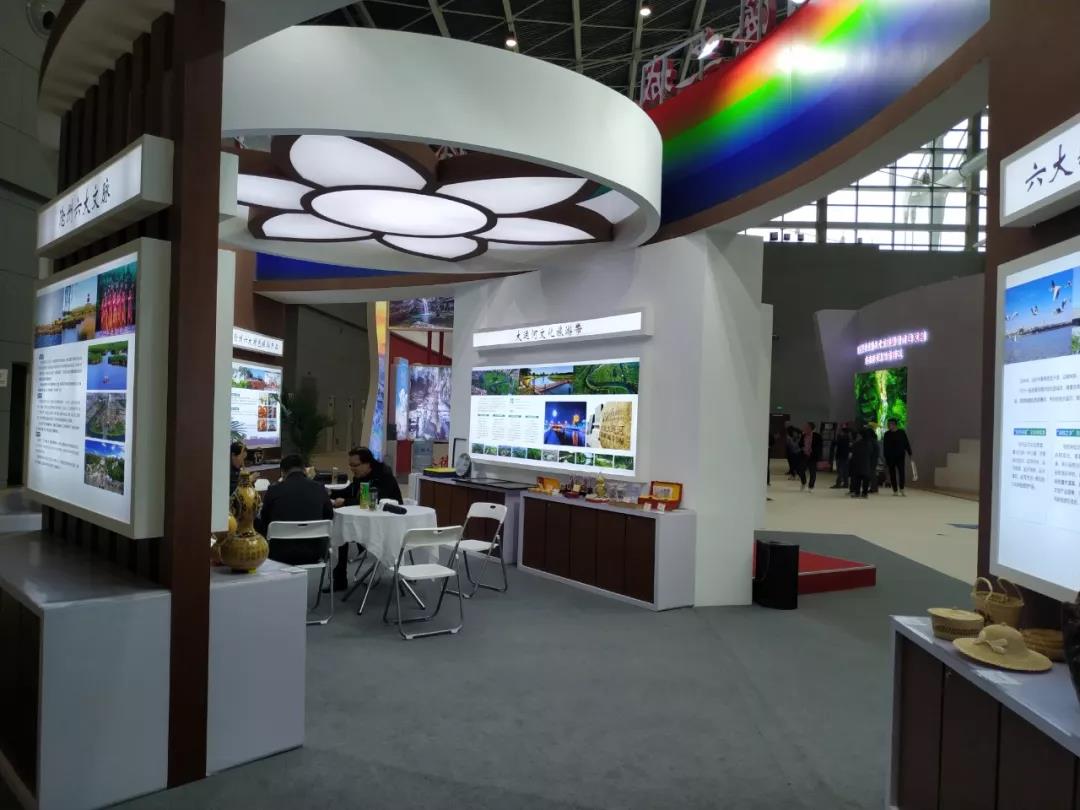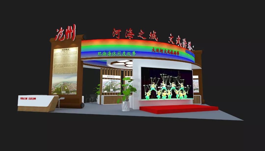 第二十四屆中國北方旅游交易會于10月14-16日在石家莊國際會展中心舉辦,交易會上,東道主河北館亮點(diǎn)紛呈。河北館展覽面積8000平方米,由6個特色主題展區(qū)及13個地市展區(qū)組成,其中滄州市展區(qū)由我集團(tuán)精心打造,為大家?guī)砹艘粓鰟e開生面的交易盛會。滄州素來有海河之城的美譽(yù),海即是渤海,河便是大運(yùn)河。方案設(shè)計(jì)出入口以浪花為造型,突出滄州河海之城的特色。頂部環(huán)形吊頂,三條交互的彩帶表現(xiàn)大運(yùn)河文化旅游帶、環(huán)渤海休閑度假帶和沿雄安生態(tài)旅游帶。中間部分頂部造型則借鑒了文物“滄州鐵獅子”背上的蓮花,凸顯其文化底蘊(yùn)。