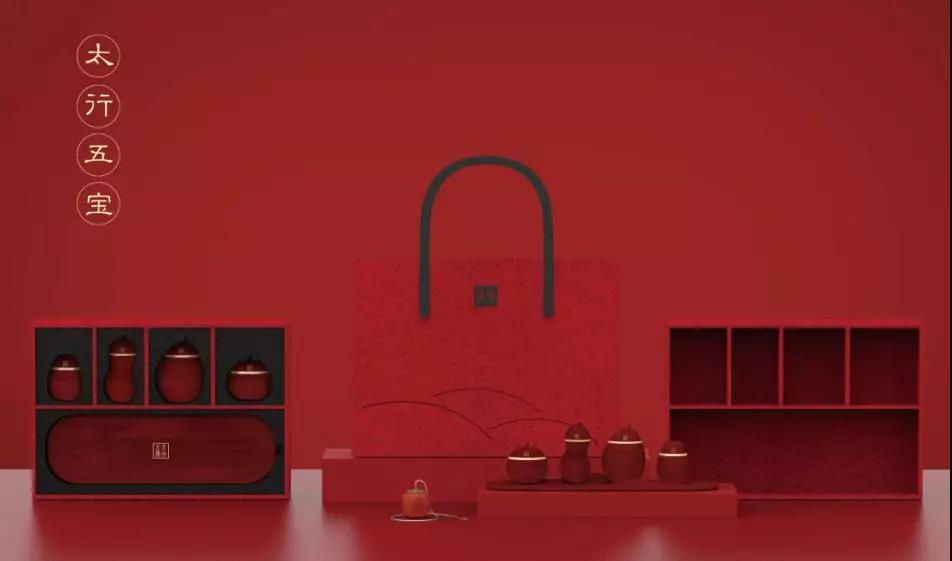 此款調料瓶套裝選用代表紅色文化的棗木材質,將太行山五種特產—山楂、花生、雪梨、柿子、大棗融入到產品造型中,四個棗木調料瓶生動形象,底部托盤山巒起伏似太行山,調料罐夾在山巒中可更加穩(wěn)固,上有“太行五寶”篆體印章描金加以點綴,突出主題更顯精致。柿子造型的調料球材質為唐山骨瓷,質薄而耐高溫,可在沸水湯鍋中使用,頂部銜接不銹鋼鏈,鏈頭設有掛鉤可在煲湯時鉤在鍋邊上并且方便取出。禮盒包裝采用紅色毛氈材質,內盒可作為收納盒,手提袋亦可作為單肩包使用,環(huán)保美觀。