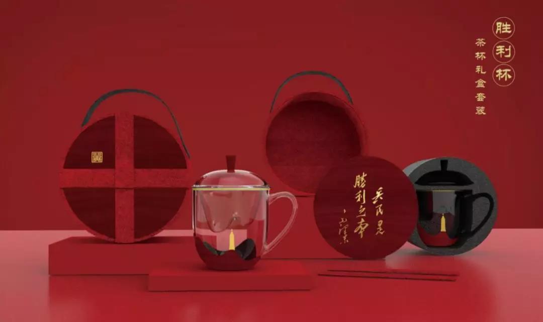 這款茶杯便是以毛主席命名的“勝利杯”為杯型,以獨特的棗木結合玻璃材質,巧妙將太行山與西柏坡紀念碑的景象呈現出來,紀念碑圖案上覆有熱敏材料可感知溫度,當水溫達到55度時紀念塔會顯現紅色提醒用戶防止燙傷。茶漏的太行山造型獨具匠心,蓋鈕處的“冀”字突出河北特色。包裝禮盒整體仿軍用水壺既視感,采用毛氈盒身和棗木盒蓋結合方式,棗木蓋上正面刻有毛主席在三大戰(zhàn)役勝利后的著名論斷“兵民是勝利之本”,背面刻“冀”字印章,亦可作為杯墊使用。