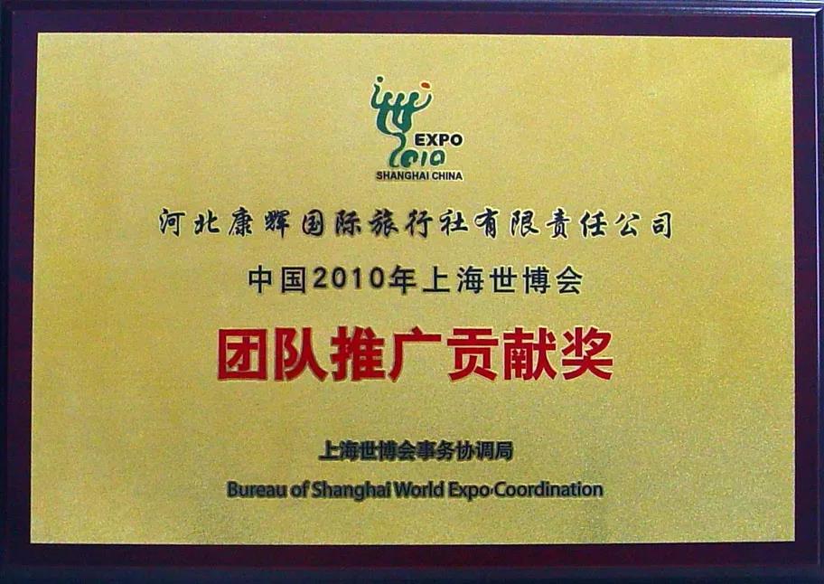 榮獲2010上海世博會團(tuán)隊推廣貢獻(xiàn)獎