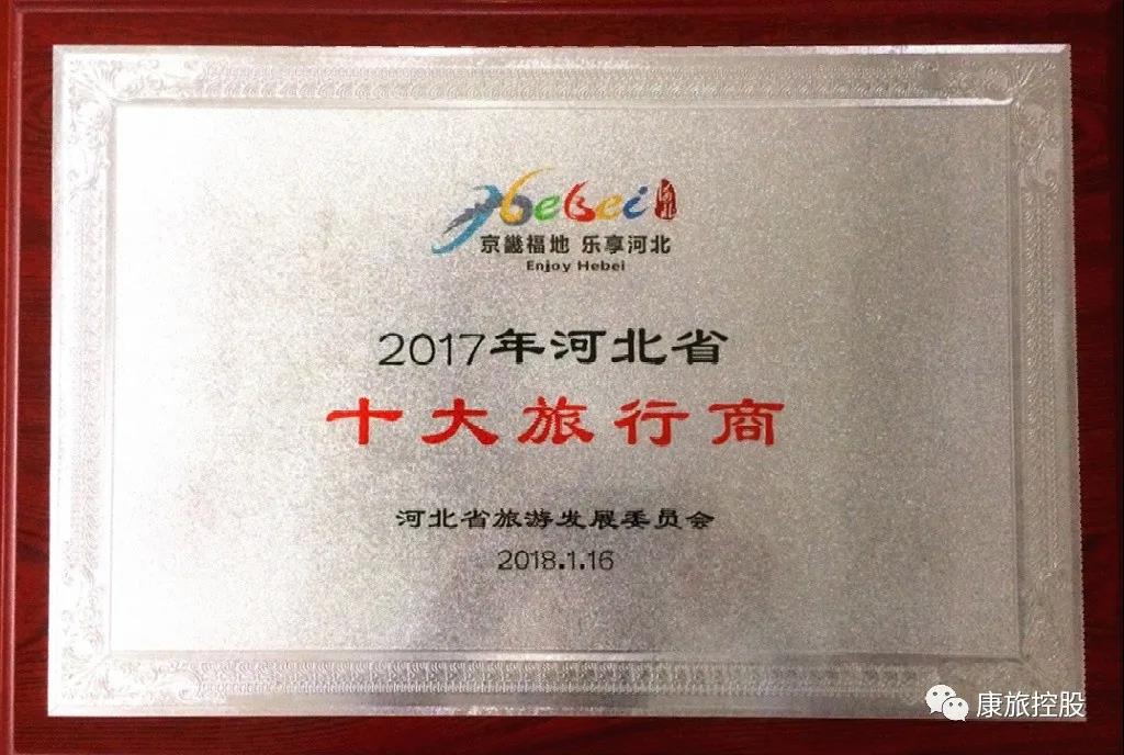 集團旗下河北康輝國際旅行社連續(xù)十年榮膺“全國百強國際旅行社”(2006-2015),并聯合集團航空服務公司,開啟了正定機場建成以來80%的境外旅游航線。2010年,作為上海世博會河北省唯一指定運營商,被國家旅游局、省委省政府評為“河北省參與上海世博會先進集體”。2017年,榮獲“河北十大旅行商”。2019年,榮獲“河北服務業(yè)創(chuàng)新領先企業(yè)50強”“河北服務企業(yè)100強”。