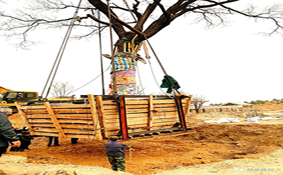 “傳統(tǒng)的移栽形式,是將樹木挖出后使用繩索捆綁,以吊車吊起樹干放置在工程車內(nèi)運輸,但也容易造成樹干與根系的損傷。我們誰也不忍心讓擁有這么多年歷史的大槐樹遭受這種困頓,所以才考慮是不是能夠通過河流運輸,讓大槐樹更安全、穩(wěn)固地來到‘新家’。”