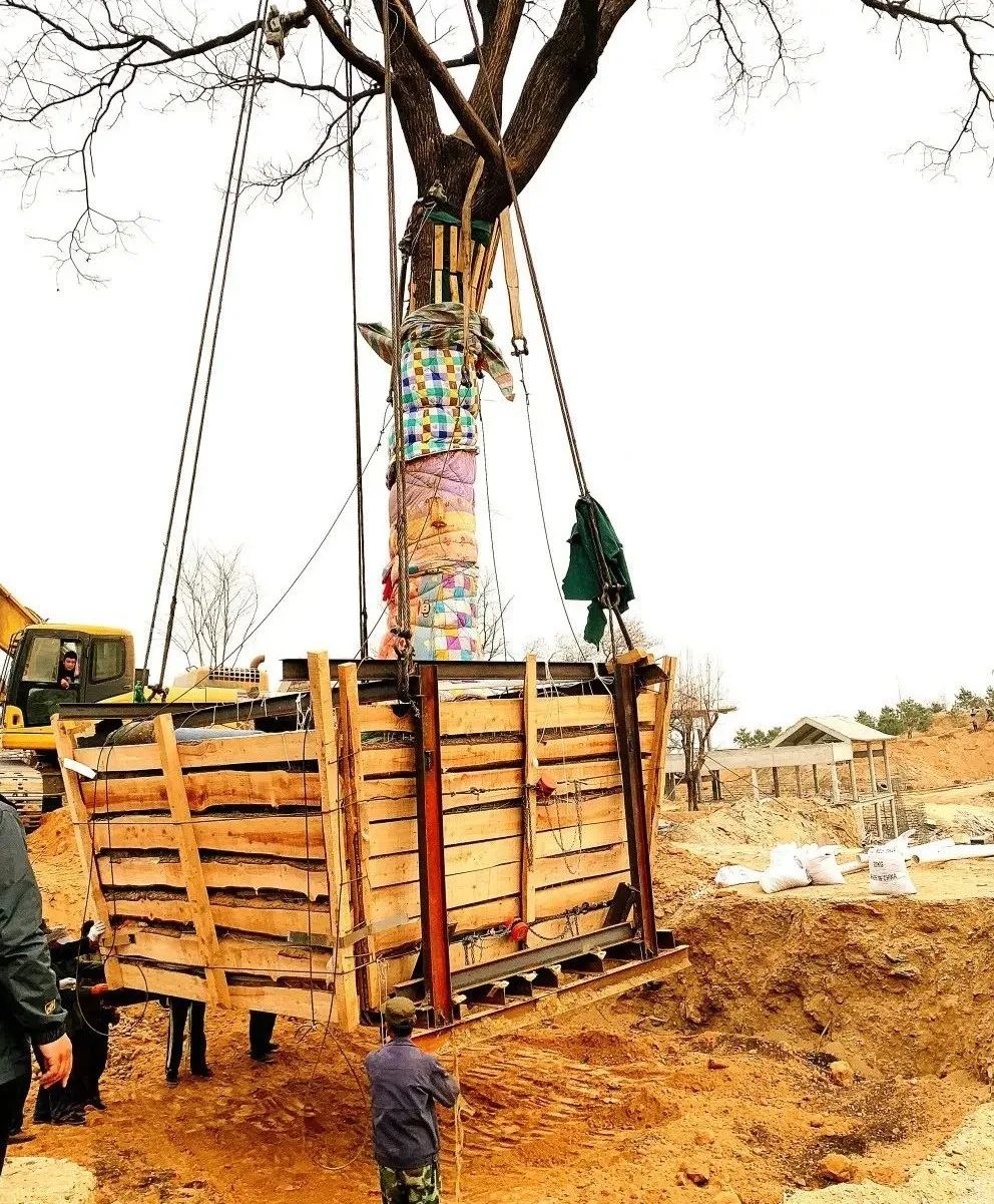 這種人性化的新型裝置,將起吊著力點(diǎn)由樹(shù)干部位轉(zhuǎn)移到根部,避免對(duì)大槐樹(shù)造成損傷;且結(jié)合下凹結(jié)構(gòu)放置根系護(hù)框,對(duì)大槐樹(shù)根系起到較好的保護(hù)作用,有效提高了移植成活率。此外,借助平臺(tái)船進(jìn)行運(yùn)送,以水的浮力承受大槐樹(shù)自身重量,大大減少了復(fù)雜機(jī)械設(shè)備參與所帶來(lái)的人為干擾、破壞,更能實(shí)現(xiàn)大槐樹(shù)在運(yùn)輸過(guò)程中的零損傷。