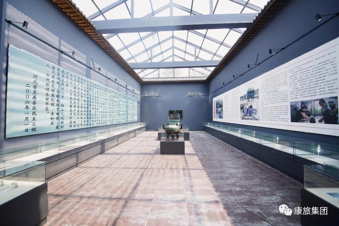 青銅博物館,館內(nèi)面積 1000 平方米。新中式建筑,拾階而上,明亮簡(jiǎn)潔。陳列了靈壽出土及民間收藏的青銅器展品,還展示非物質(zhì)文化傳承人王三妮的失蠟法青銅器制作工藝,王三妮的告別田賦鼎被中國(guó)農(nóng)科院收藏。