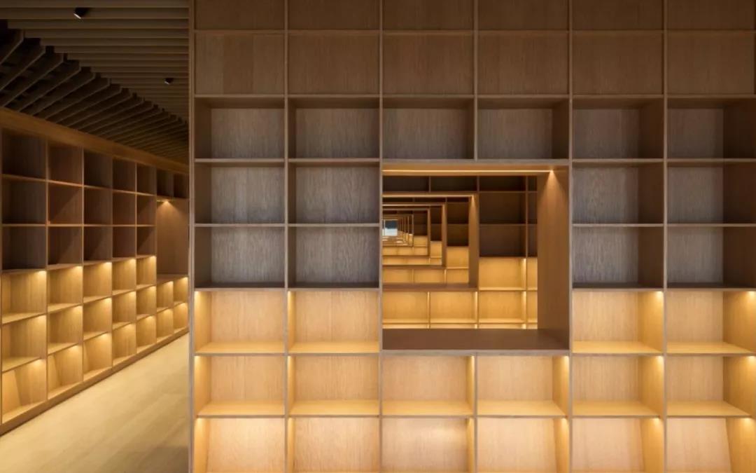 位于上海愛琴海購物公園的書店“光的空間”,用樸拙的方形鏤空木制書架,為讀者打造了一個和諧的閱讀空間。