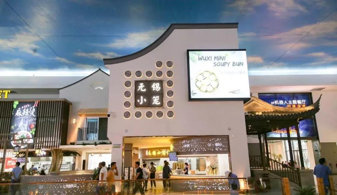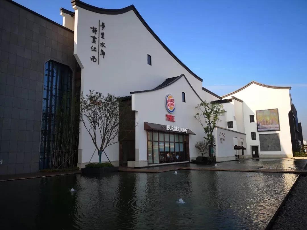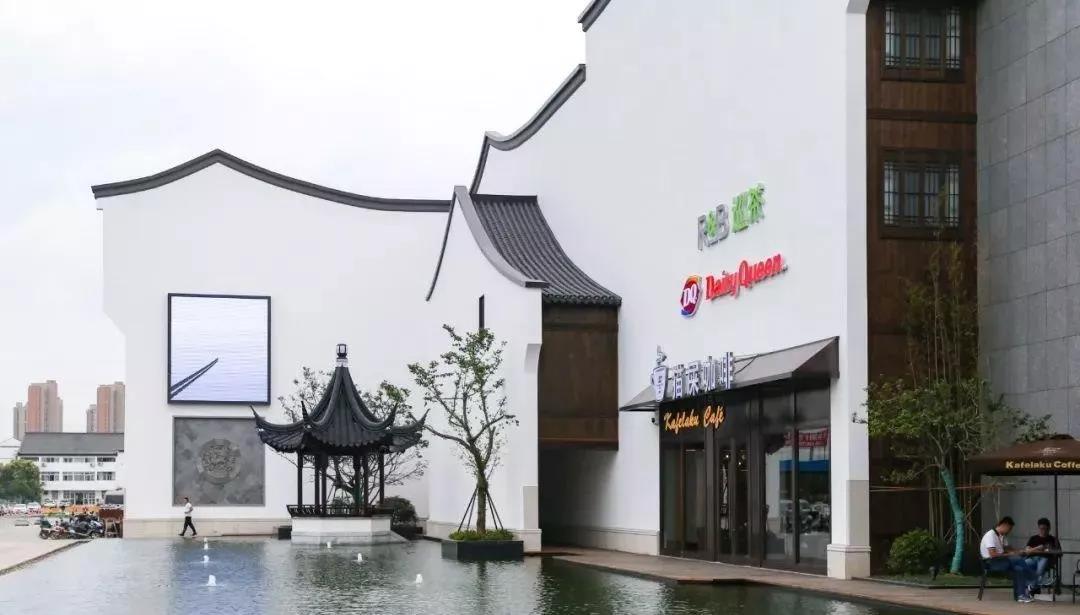 入口門頭的設(shè)計,極具蘇式建筑特色,“白墻黛瓦人字線條+圓形鏤空墻布隔斷+搭配小型池水裝飾”,很有蘇州園林的城市辨識度。