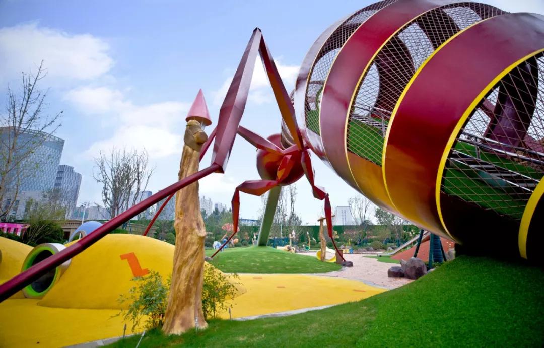巨型的蟻王高8米跨度13米,整個(gè)螞蟻的身體是“牧兮夢(mèng)工隊(duì)”用不銹鋼人工鍛打而成,內(nèi)部處理了網(wǎng)格透光透風(fēng)和隔熱處理,一方面增強(qiáng)整個(gè)空間的通透性。另一方面,也是為了讓家長(zhǎng)能看到孩子在滑梯之中的狀況,便于對(duì)孩子的保護(hù)。