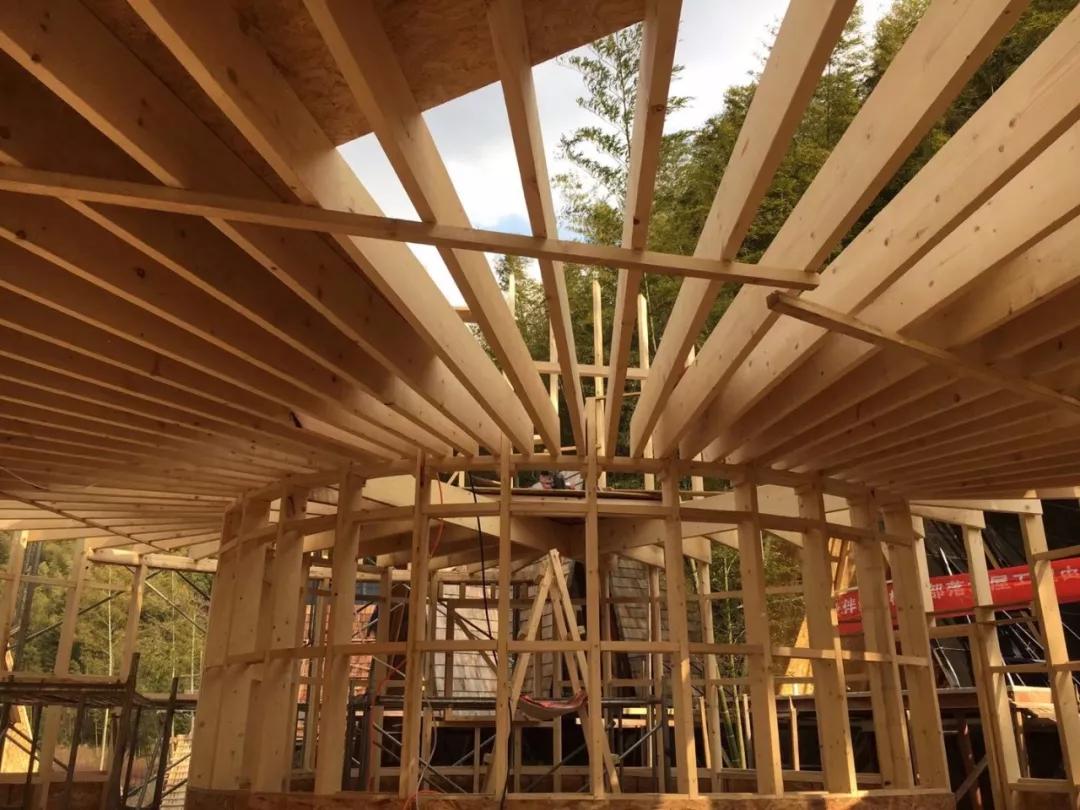 建筑的弧頂形態(tài)流暢,大老遠(yuǎn)就很引人注目??拷?xì)看,每一塊木頭的形狀都是獨(dú)一無二的。同時(shí)設(shè)計(jì)師根據(jù)人的動(dòng)線和視線,開啟了多個(gè)視覺窗戶,使得在鳥巢loft中站、坐、臥、仰,可以欣賞到周遭的不同風(fēng)光。