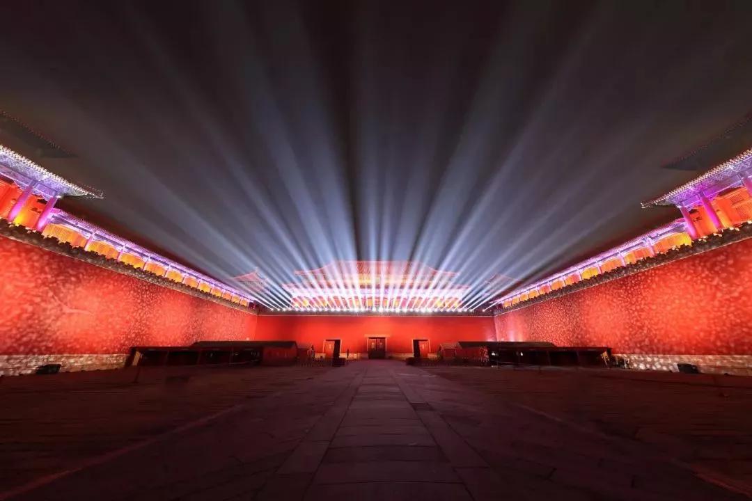 臨近城墻西側(cè)的部分古建筑也被點亮,暢音閣戲樓正上演著精彩的戲曲表演。