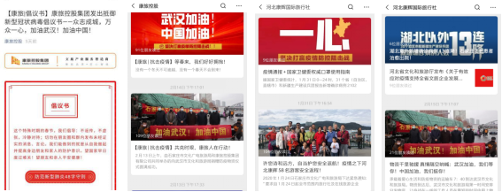利用抖音短視頻平臺、康旅集團及河北康輝國際旅行社微信公眾號連續(xù)發(fā)布多篇關(guān)于防范疫情的文章和體現(xiàn)心系武漢的正能量短視頻,號召全體員工和廣大游客、市民,眾志成城、萬眾一心,全力做好疫情防控工作。